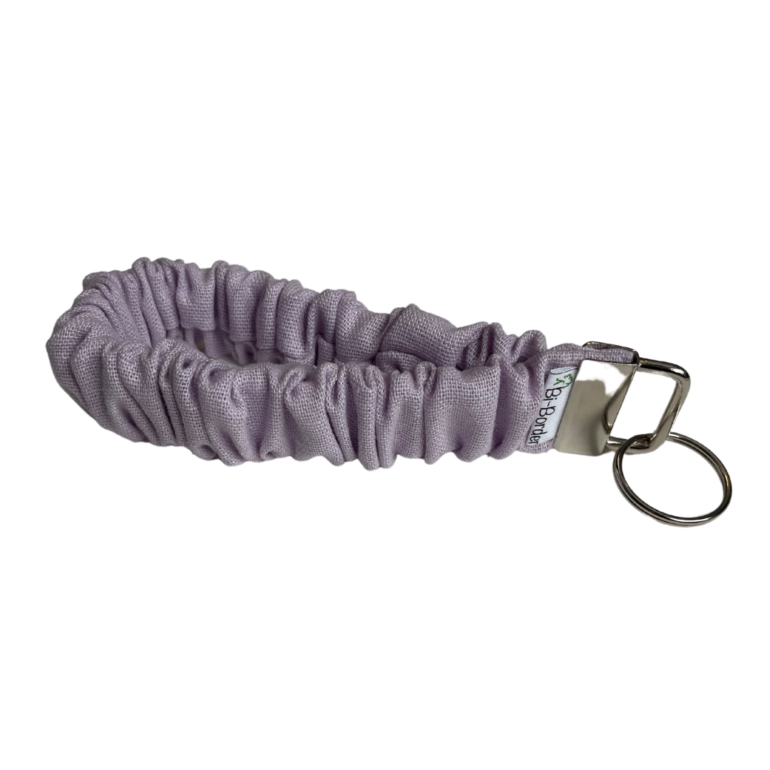 This scrunchie keychain is made to hold your keys and all the accessories while maintaining its shape. It will not stretch out due to weight and it will stay securely on your wrist. Its also much easier to find your keys when you are searching for your scrunchie keychain.